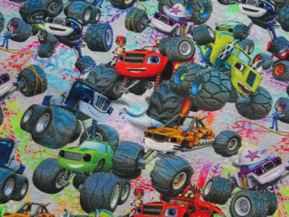 Teplákovina sivá "farebné rozprávkové autá" - digitálna tlač