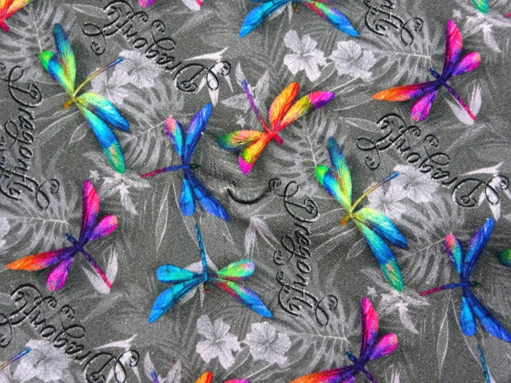 Teplákovina sivá "farebné vážky" - digitálna tlačSkladom19,00 EUR/ m15,45 EUR bez DPH