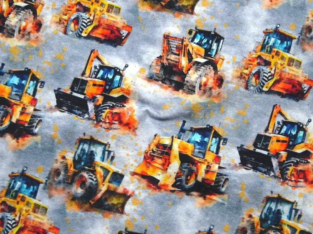 Teplákovina sivá "traktor, bager" - digitálna tlačSkladom19,50 EUR/ m15,85 EUR bez DPH