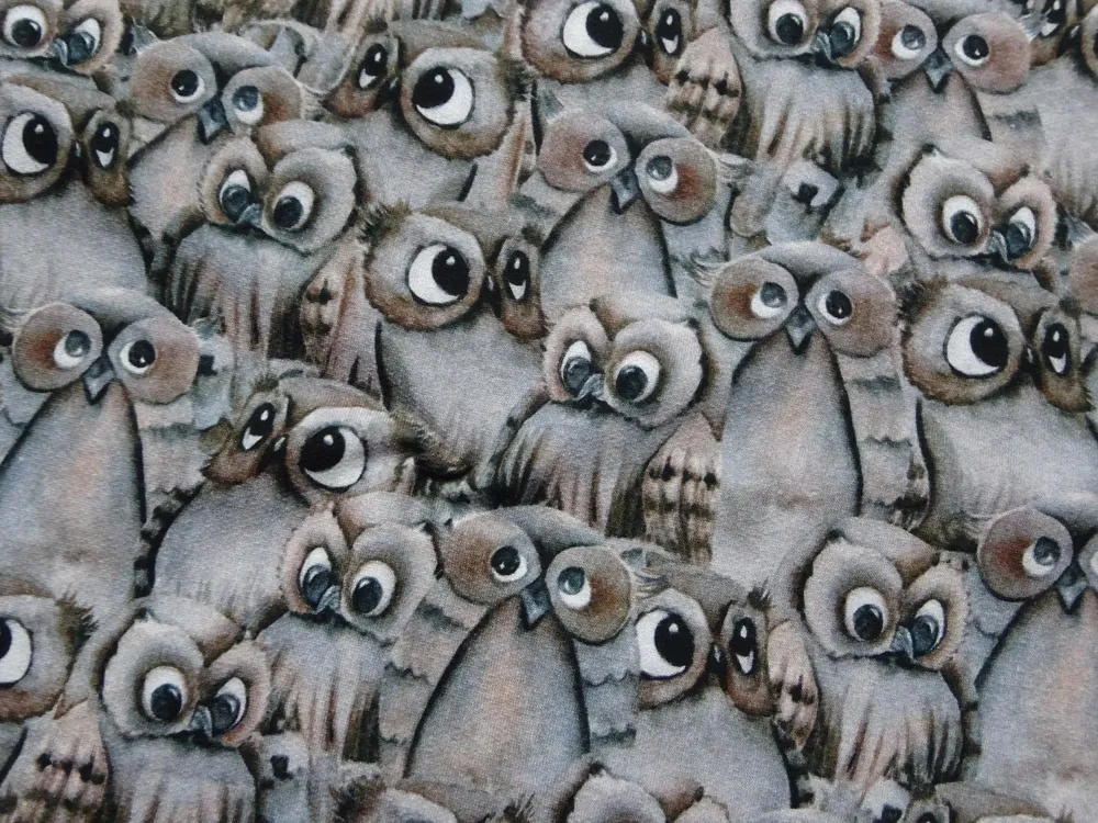Teplákovina sivo-hnedá "sovičky"Skladom17,50 EUR/ m14,23 EUR bez DPH
