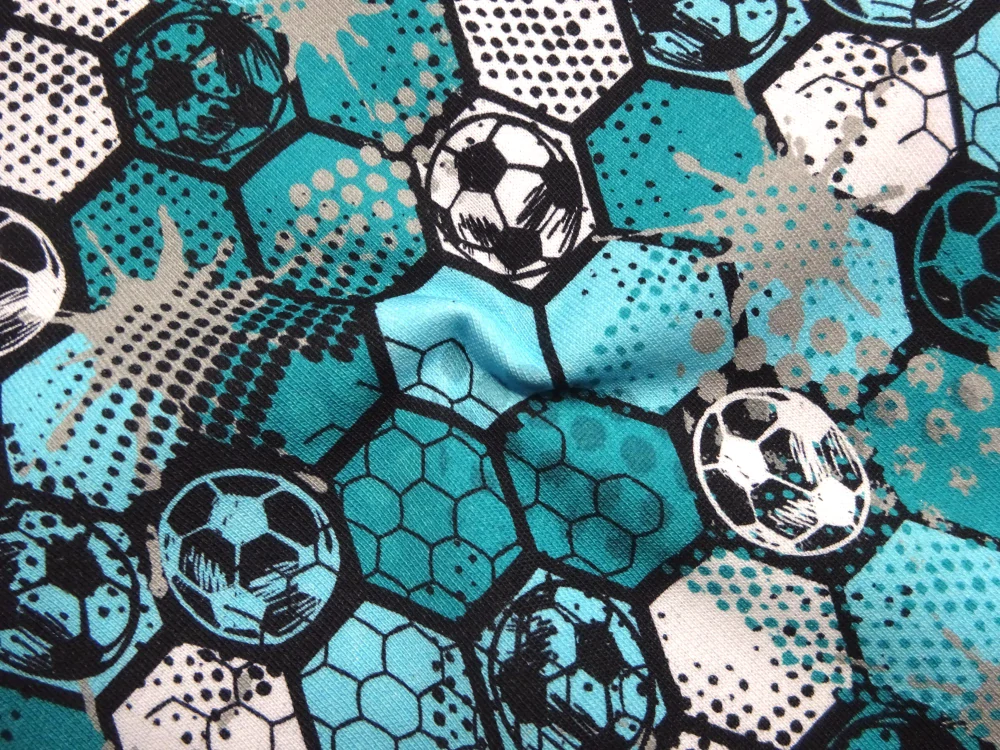 Teplákovina tyrkysovo-modrá "futbal" - počesanáSkladom17,50 EUR/ m14,23 EUR bez DPH