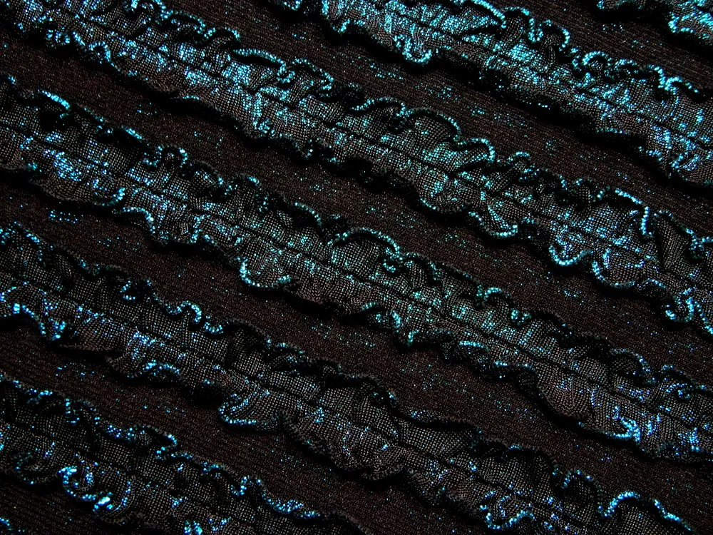 Úplet čierny "tyrkysovo-čierny plastický volánik"Skladom10,00 EUR/ m8,13 EUR bez DPH