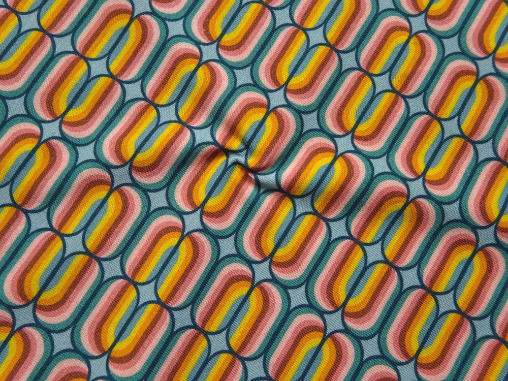 - vzor - žltý, pomarančový, ružový, smaragdový a tmavomodrý ovál