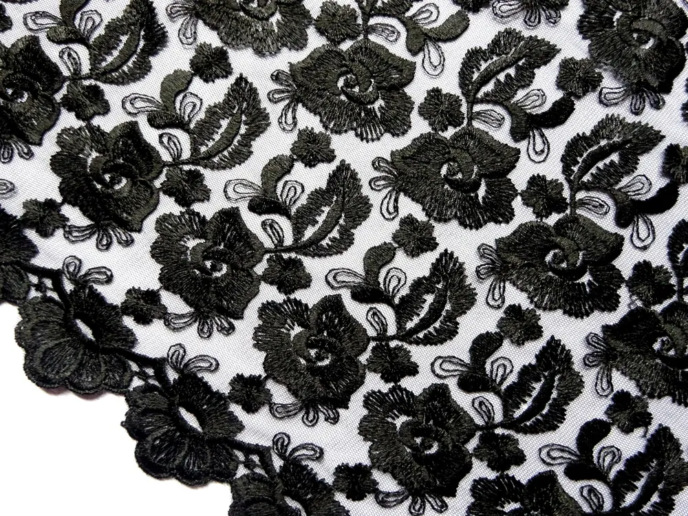 Vyšívaný tyl čierny "kvety"Skladom13,50 EUR/ m10,98 EUR bez DPH
