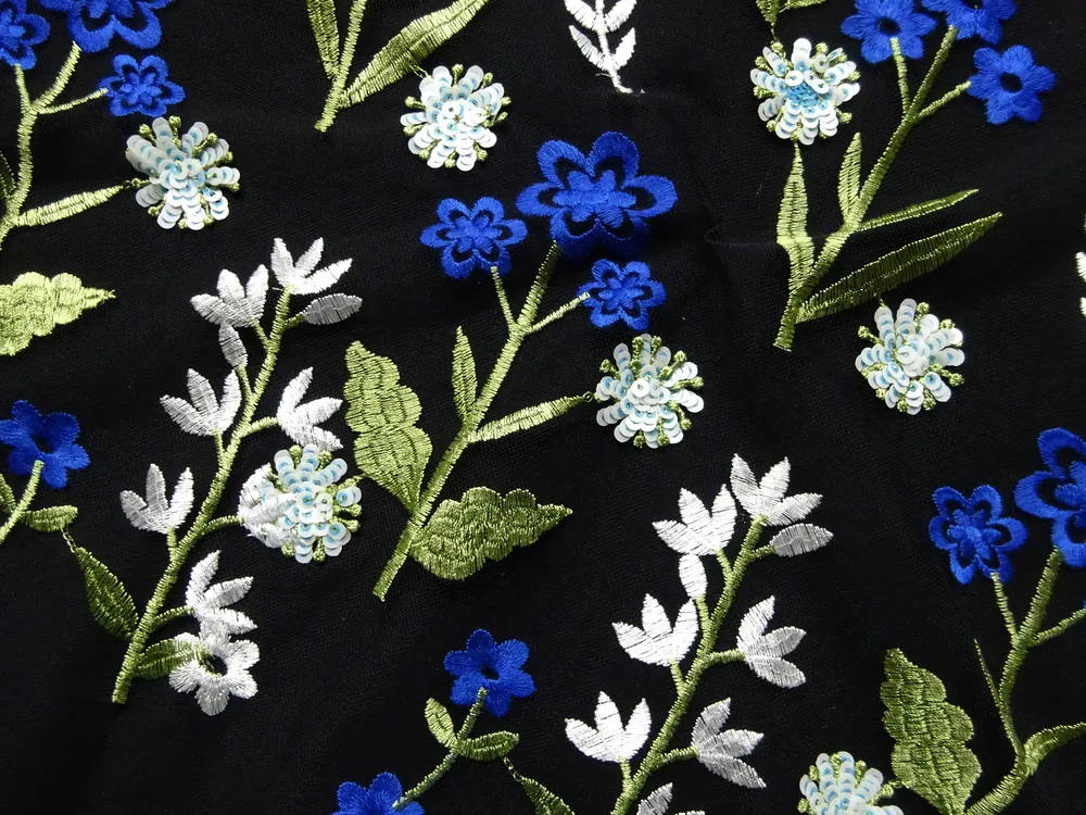 Vyšívaný tyl čierny "kvety, flitre"Skladom28,00 EUR/ m22,76 EUR bez DPH