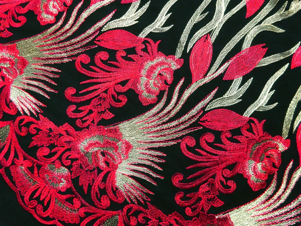 Vyšívaný tyl čierny "zlato-červený vzor"Skladom30,00 EUR/ m24,39 EUR bez DPH