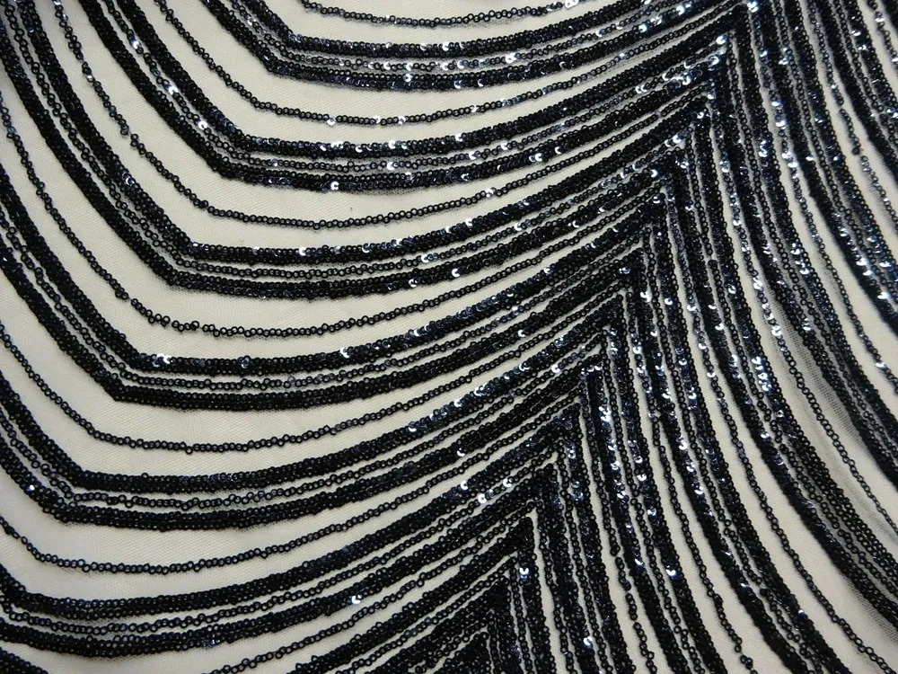 Vyšívaný tyl telový "čierne flitre"Skladom35,00 EUR/ m28,46 EUR bez DPH