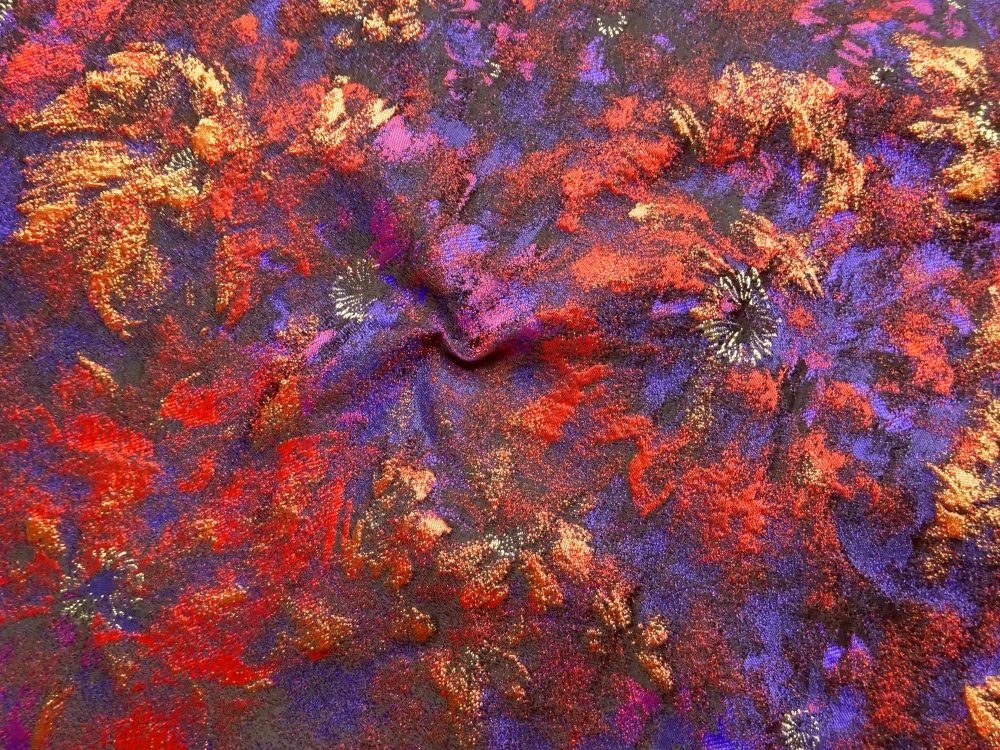 Žakard Frida ružovo-fialový "zlato-červené kvety"